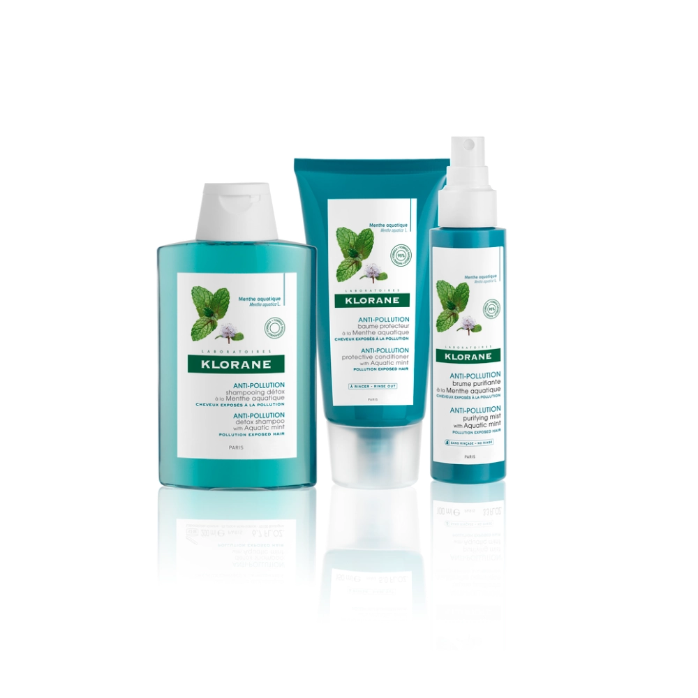 Klorane Menta Aquática Pack Shampoo 100ml + Bálsamo 50ml + Spray Protetor Anti-Poluição